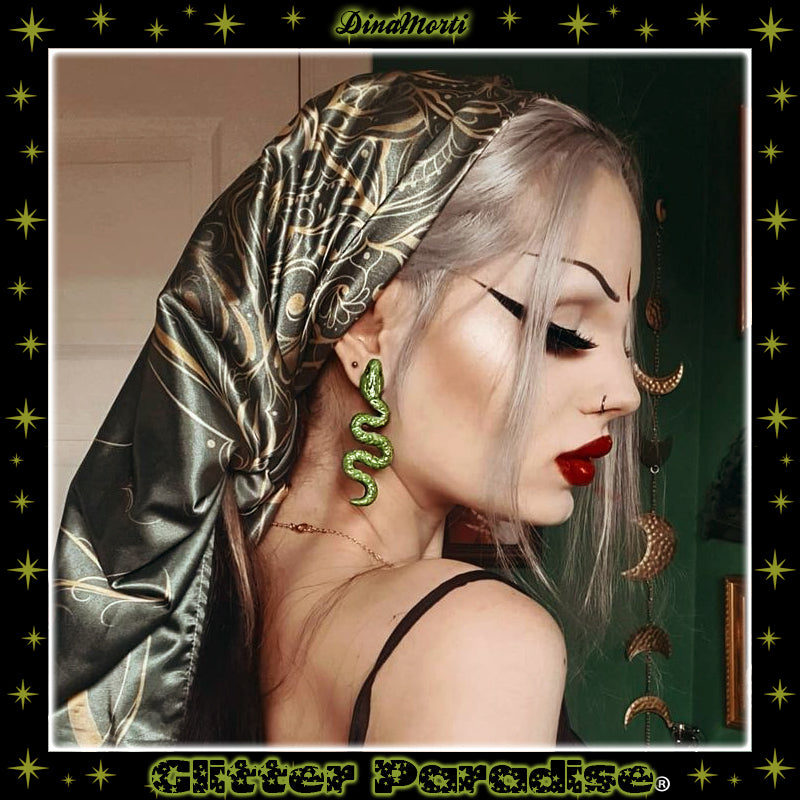 💡 Inspiration: Born from the whispers of enchanted nights and ancient forests, these earrings carry the carved forms of serpents whose eyes glimmer with strass like secret sparks of forbidden magic. Each curve and coil holds the energy of hidden rituals and nocturnal spells, a tribute to the cunning, the mystical, and the untamed. Designed for those who walk between shadows and moonlight, these snakes embody witchery, allure, and a touch of dark elegance.